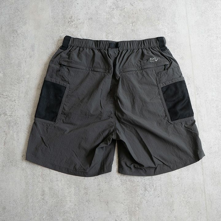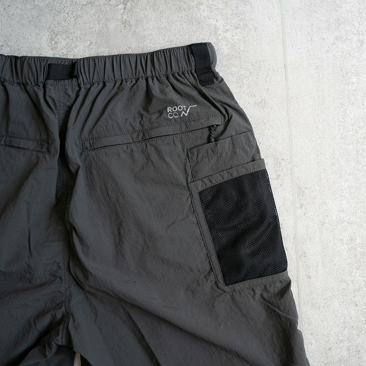 ROOTCO.独自加工のオリジナルファブリック"AMPHIBIA(アンフィビア)"を採用し、水陸両用仕様に仕上げたアウトドアショーツ。