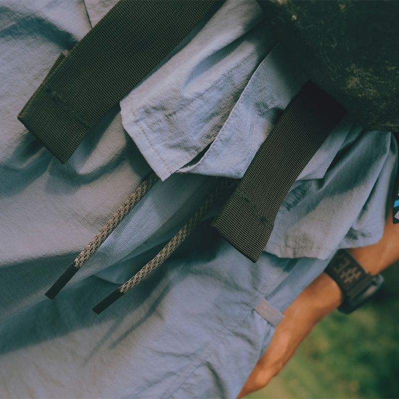 行動食はもちろん、ウィンドシェルやULSUSのアルファ製品などを手軽に収納可能です。天候や気温の変化によるアウターの脱ぎ着があっても、サイドポケットがあればストレスなく過ごすことができます。