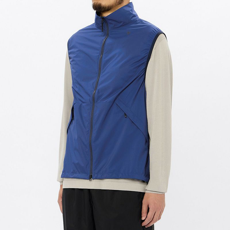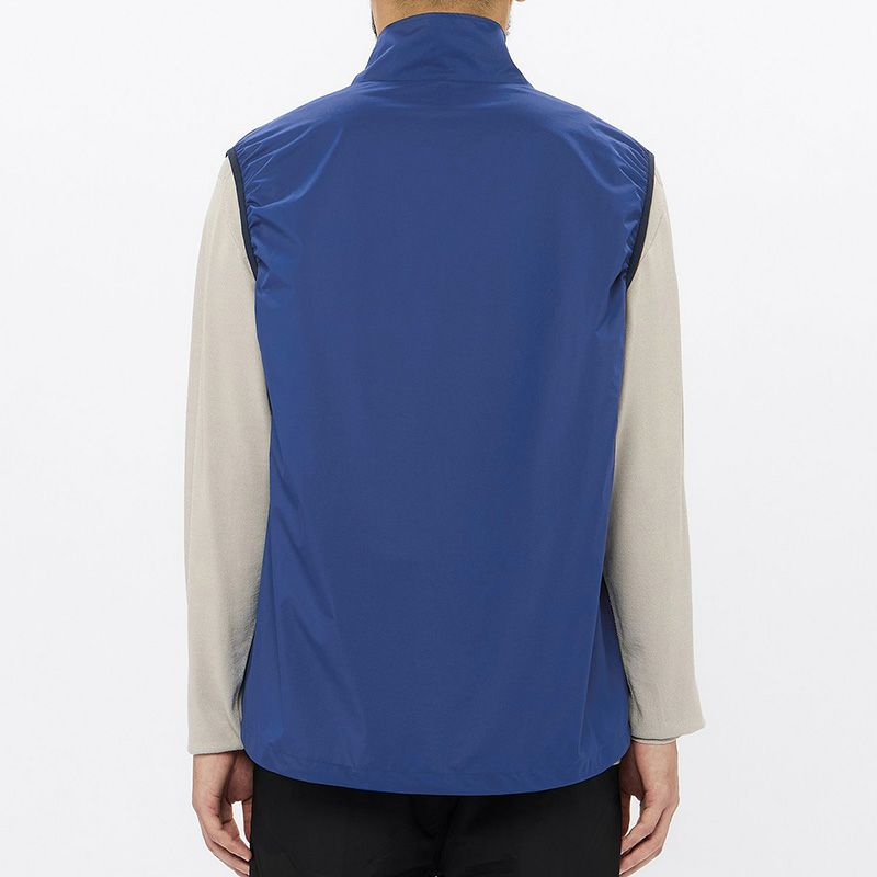 軽量性と防風性に優れ、サラリと快適に羽織れる機能素材を使用した、一枚仕立てのベスト。