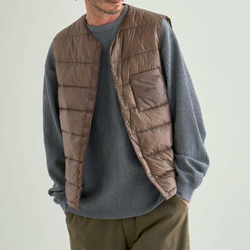 アウトドアシーンだけでなく、オフィスやタウンユースでのレイヤリングにも重宝するダウンベスト。