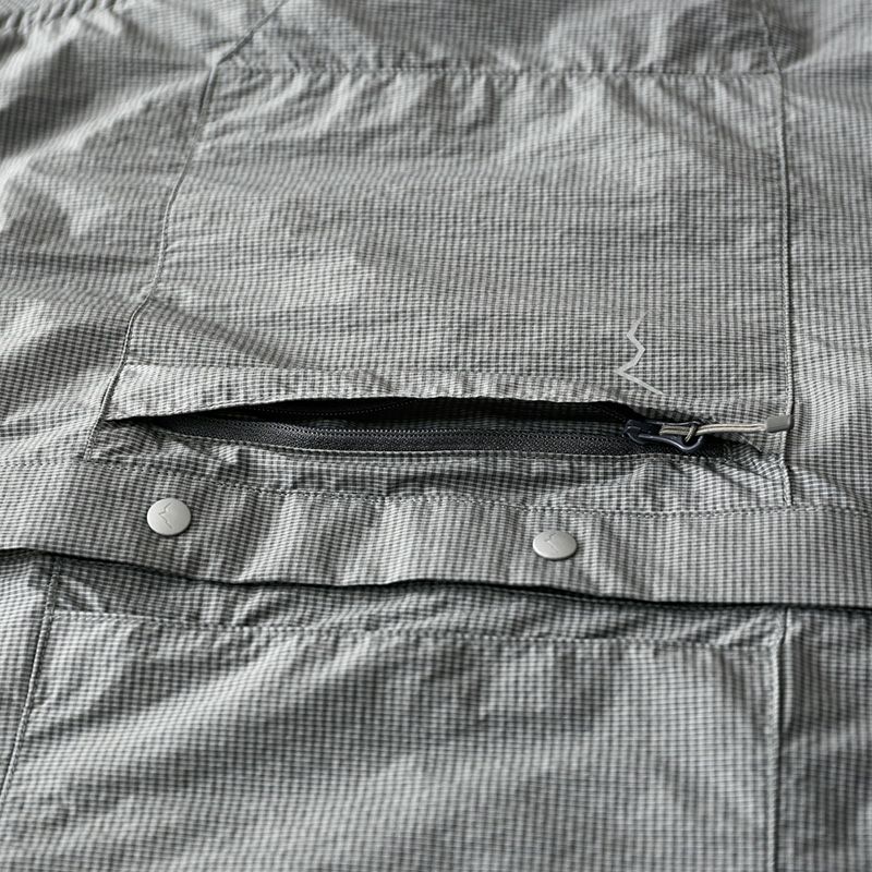 薄手で軽量性もありながら撥水コーティングも施され、スナップボタンで着脱のストレスも軽減してくれます。