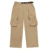 大小様々なポケットを7か所を配置され、収納力に優れたカーゴパンツ。ウエストのウェビングベルトを設けることで、ウエスト周りを簡単に調整可能。裾のドローコードを絞ることで、シルエットの変化が可能