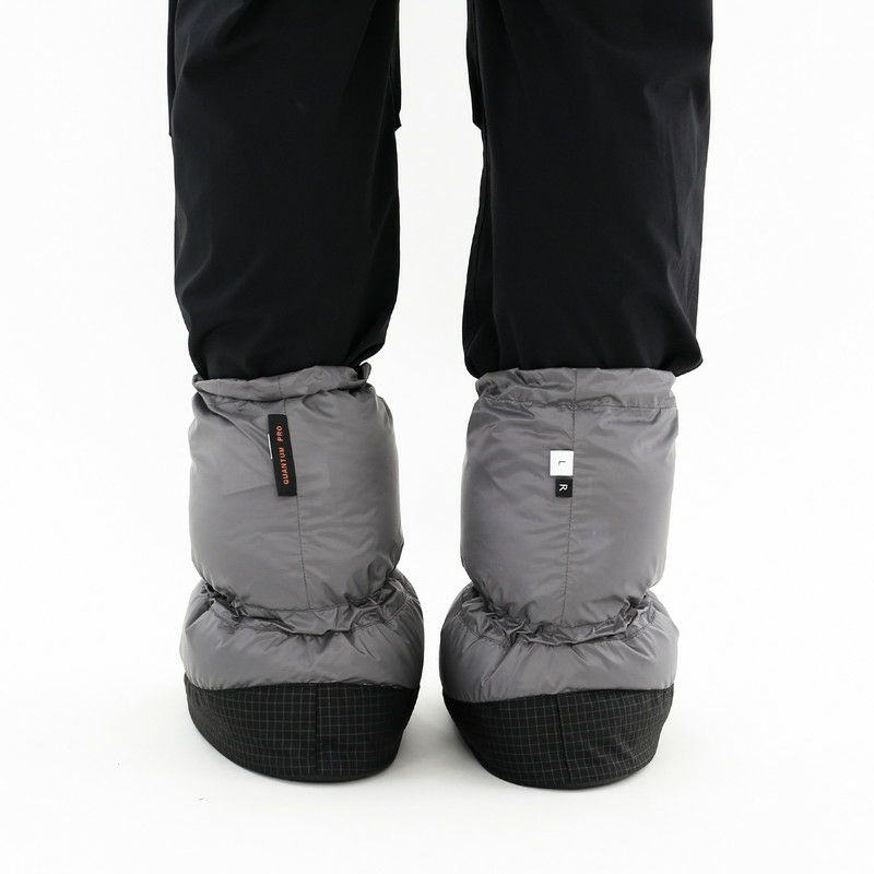 「Down Booties」は、寒冷地でのリラックスタイムを想定して設計された軽量インシュレーションブーティーです。