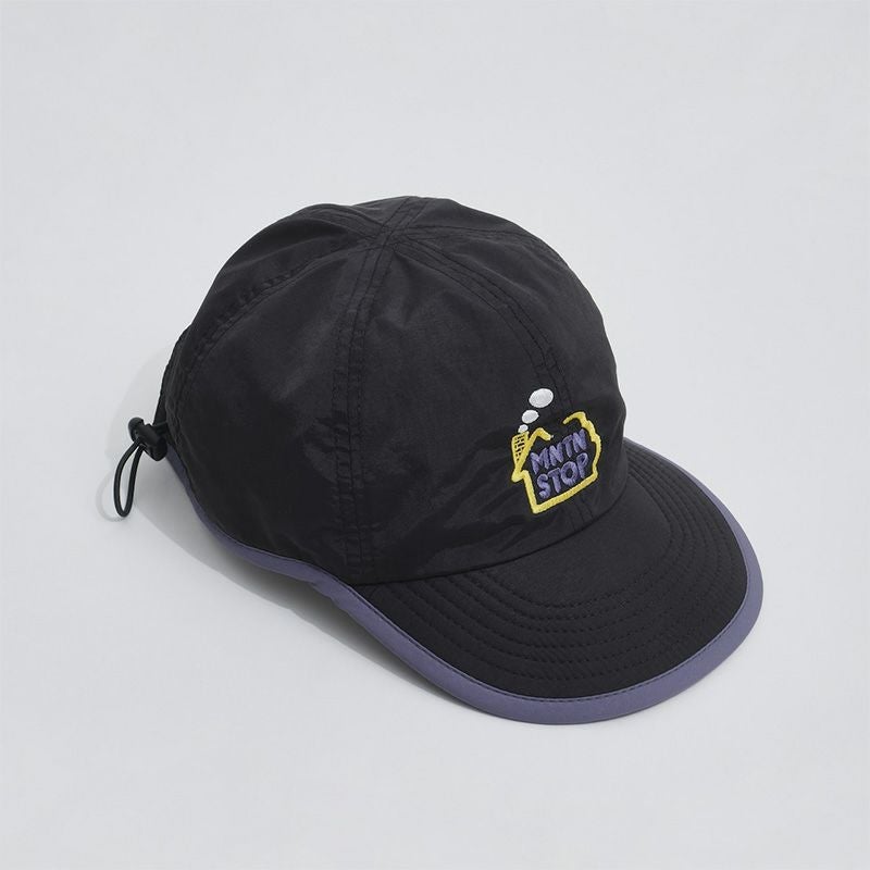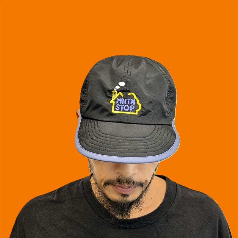 “山のホットステーション”を表現した山小屋刺繍入りトレイルキャップ。