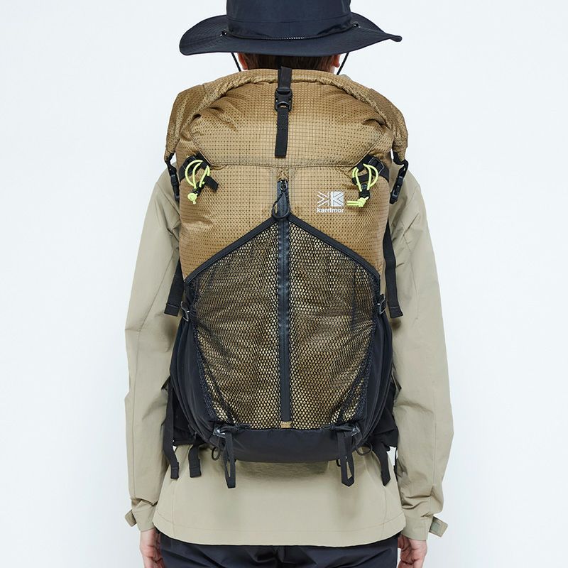優れた強度を持つX-GRID R/S生地を使用し、容量調整ができるロールトップタイプ。 ユーティリティショルダーハーネスなど豊富な機能を装備し「行動しながらの操作性の快適さ」「荷物の出し入れ・撤収のしやすさ」を目指したリュック。デイハイクから岩場や難路がある登山で機動力がある山行スタイルを実現。