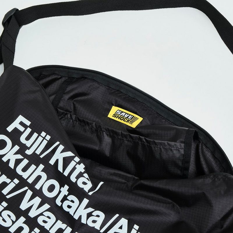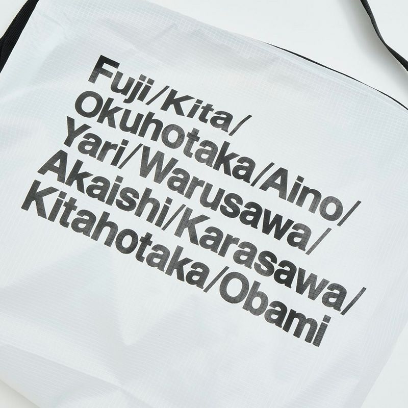 日本の山標高ベスト10をプリントしたナイロンリップストップ素材のライトウェイトショルダーバッグ。