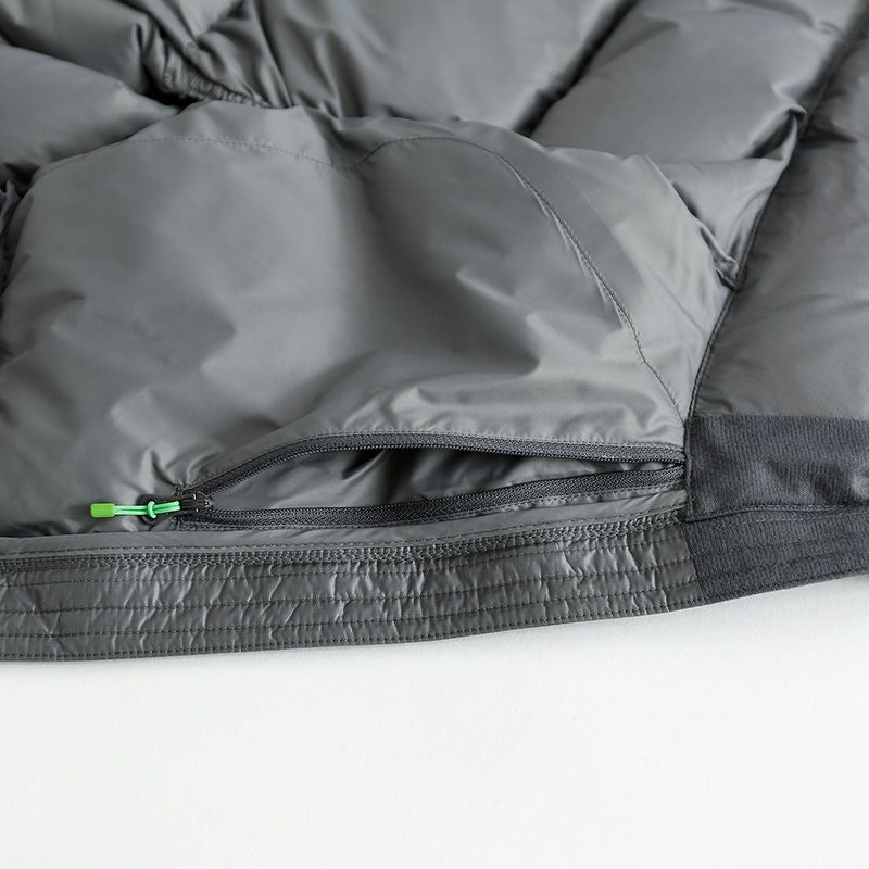 ツーウェイジッパーで上下どちらからも開閉可能、体温調節にも役立ちます。専用のパッキングポーチにまとめれば、持ち運びや収納が非常に便利です。