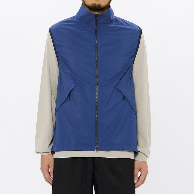 軽量性と防風性に優れ、サラリと快適に羽織れる機能素材を使用した、一枚仕立てのベスト。