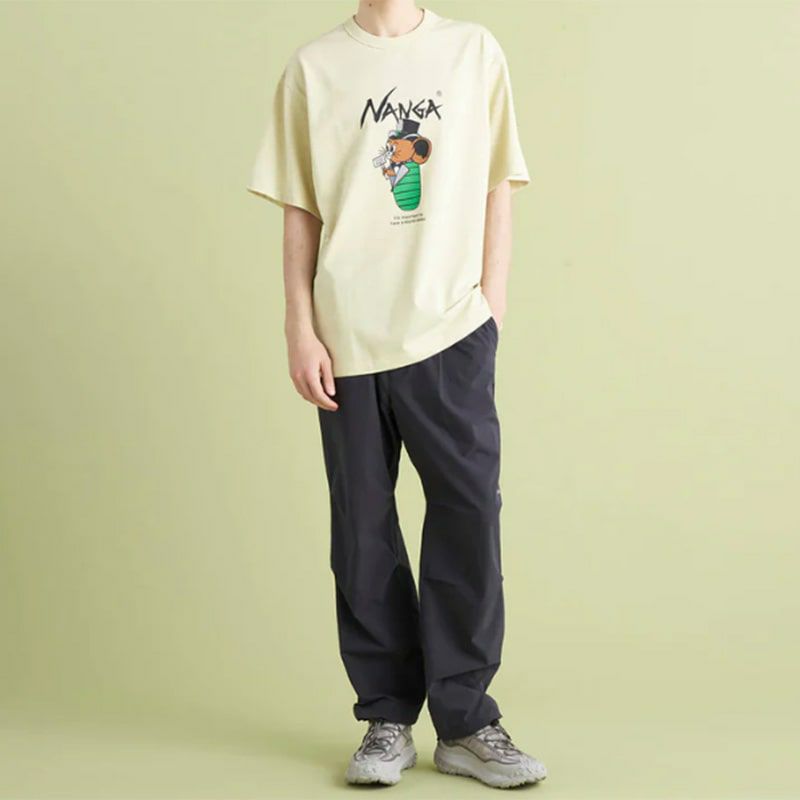 ジェリー鵜飼氏を代表するジェリーマルケスが、ナンガのシンボルの1つであるスリーピングバッグ(寝袋)に入ったグラフィックデザインプリントTシャツ。キャッチーなグラフィックで、ストリートライクな着こなしにもぴったり。