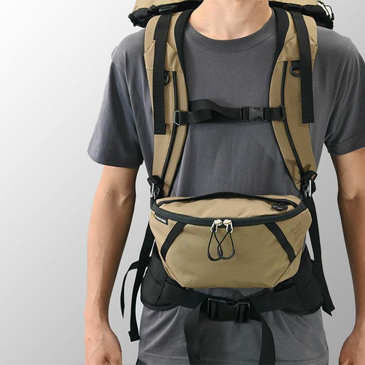 行動中はチェストバッグとして使うと、重量をザックに分散し肩の負担を減らせます。