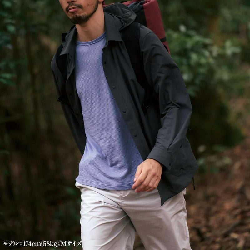 春や秋は単体で、冬はミッドレイヤーの下に。季節や標高を問わず、快適な温度バランスを保ってくれる万能シャツです。