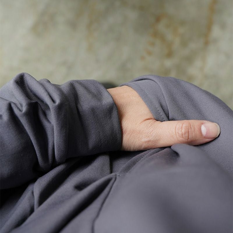 素材には、螺旋状のポリエステルフィラメントをウールの繊維束で包み込んだ日本製素材「NIKKE AXIO®」を採用。肌面はウールとポリエステルを起毛させた柔らかな仕上がりで、腕を通した瞬間に感じる暖かさと優しい肌触りが特徴です。