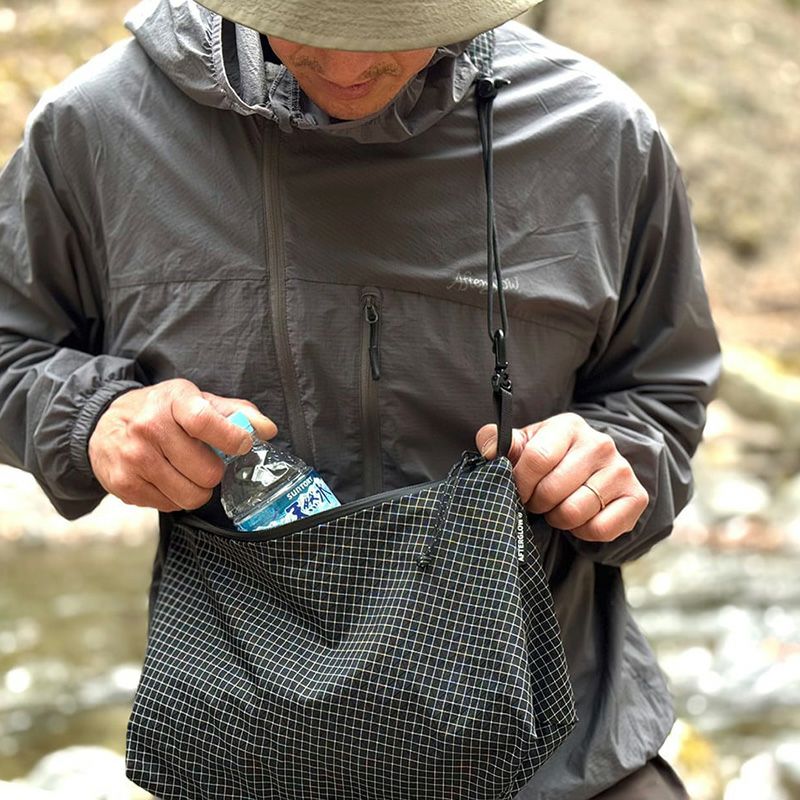 ポーチ側面が内側に傾斜した作りで、斜面など不安定な場所で開け閉めしても内容物が転げ落ちにくい構造。