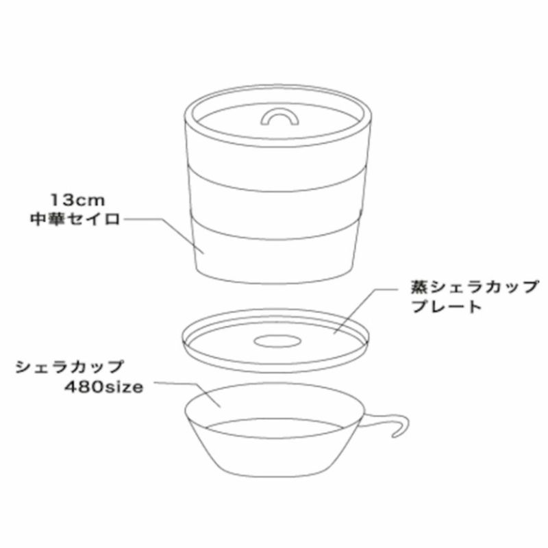 蒸シェラカッププレート&13cm中華セイロ(2段)+480シェラカップのセットとなります。
