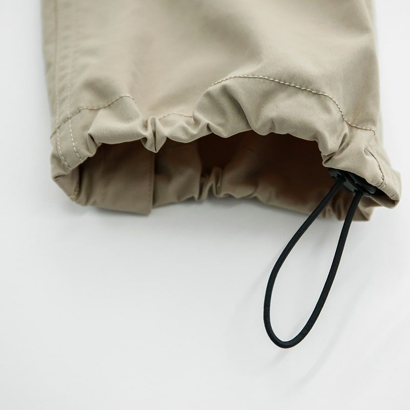ウエストはウェビングベルト、裾にはストリングを採用しているためお好みのスタイルに合わせて調整が容易に行えます。