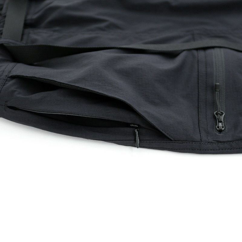 さらに、裾にはドローコードを備え、シルエットや風の侵入を調整可能。ウェービングベルト付きウエストはフィット感を自在にコントロールできます。
