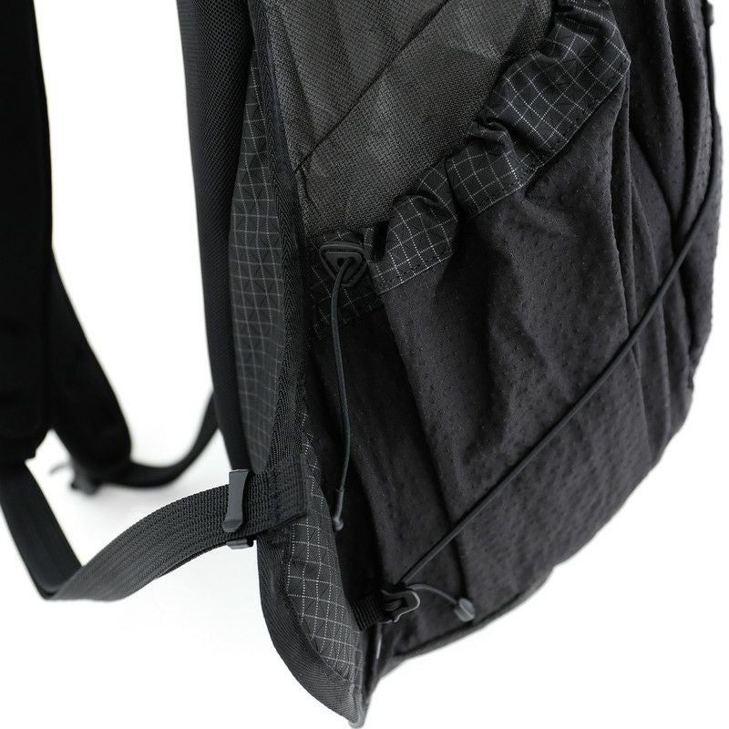 フロントとサイドにはストレッチナイロンポケットを配置し、ボトルや小物の出し入れもスムーズ。 メインコンパートメントは防水ジッパー仕様で、内部にはPCスリーブとジッパーポケットを備え、タウンユースからトレイルまで対応します。