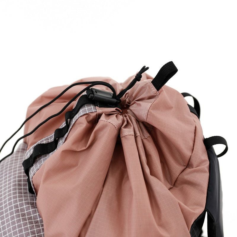 ドローコード式のメイン開口部は素早いアクセスを可能にし、さらにバックルで固定すれば荷物の揺れや雨の侵入を防止。