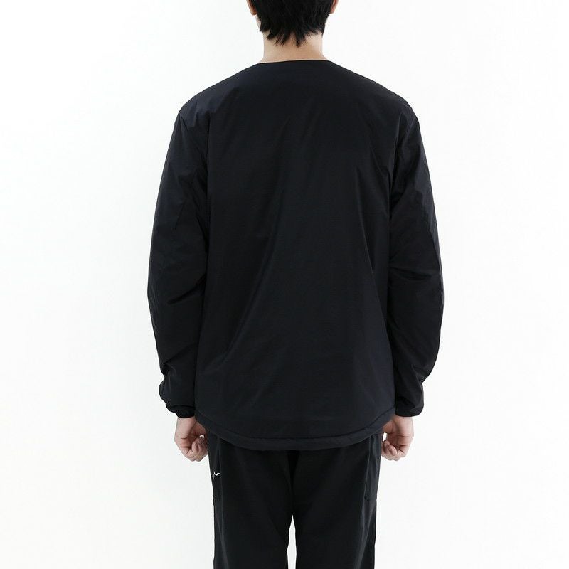 シェルの下にも着やすいノーカラー(襟無し)デザインで、レイヤリングの自由度が高いのも特徴です。