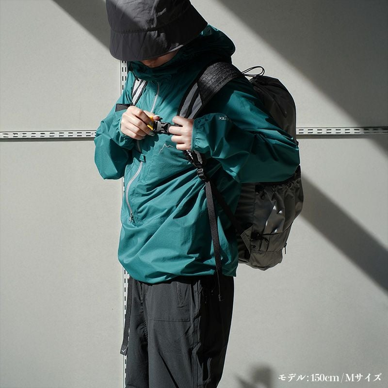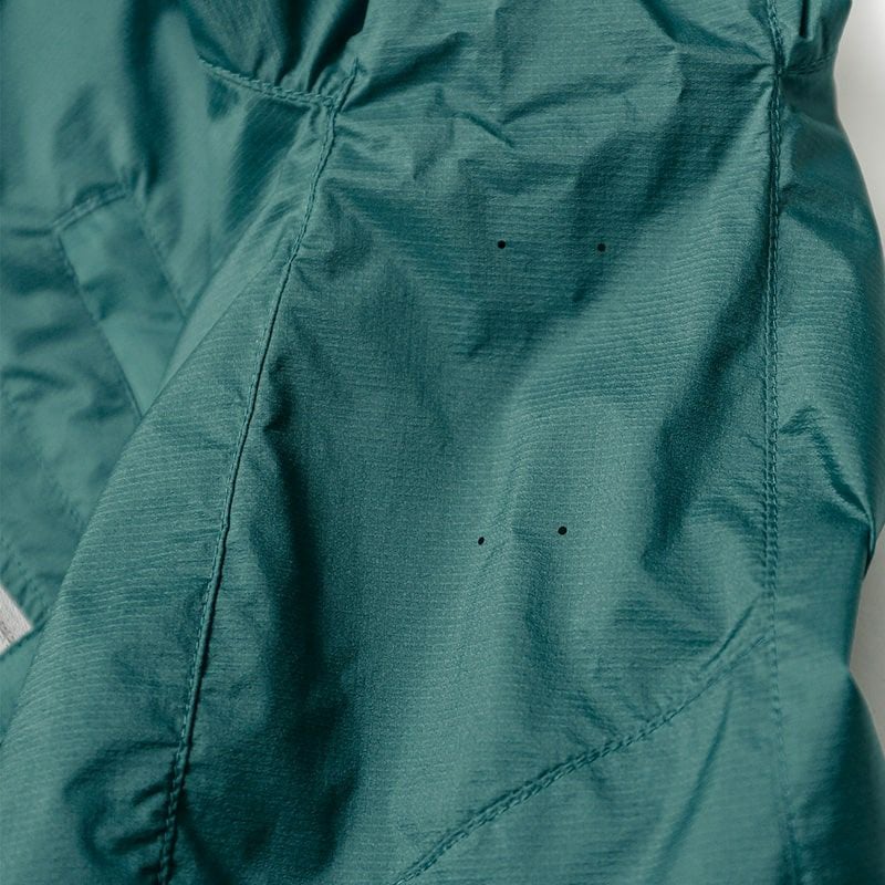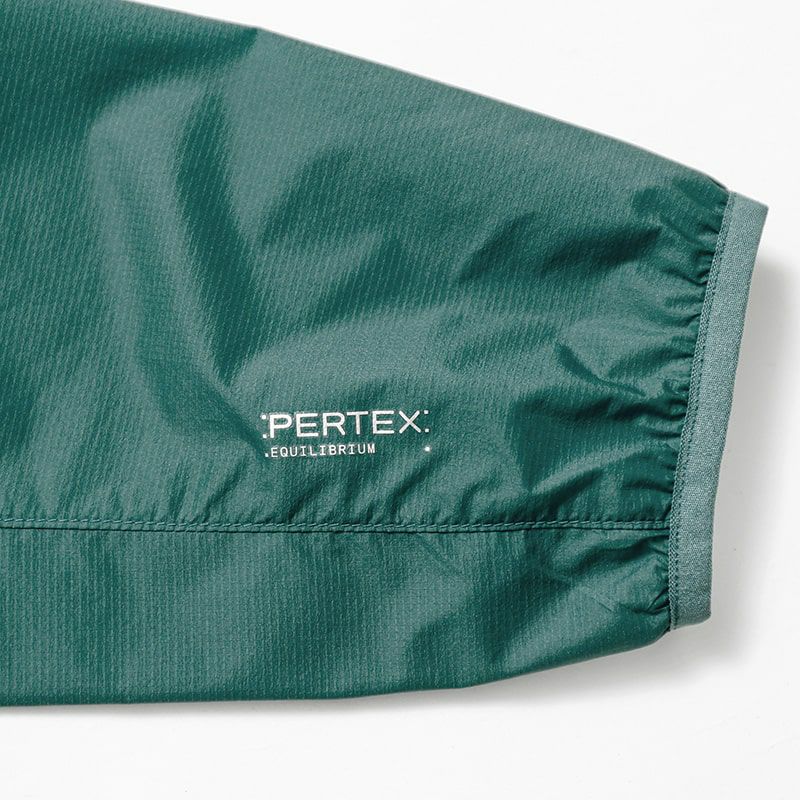 Nylon 100%(Pertex Equilibrium)、Nylon 12D(38g / sqm)、DWR Finish(C6)、YKKジッパー