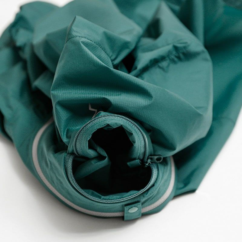 胸部分にはパッケージブルポケットというものが適用されているため、ポケットとしての機能だけでなく、使用しない場合にはポケットの内側を裏返すことによってスタッフバッグなしで収納が完了できます。