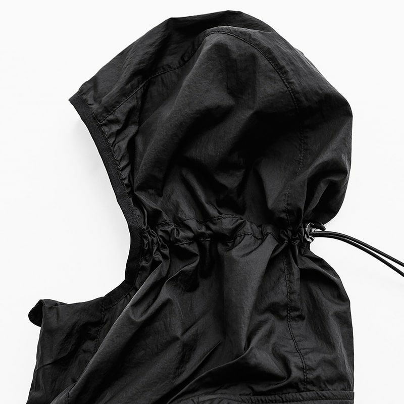 フードとウエストの裾にはストリングが適用されているため、サイズ調節ができます。
