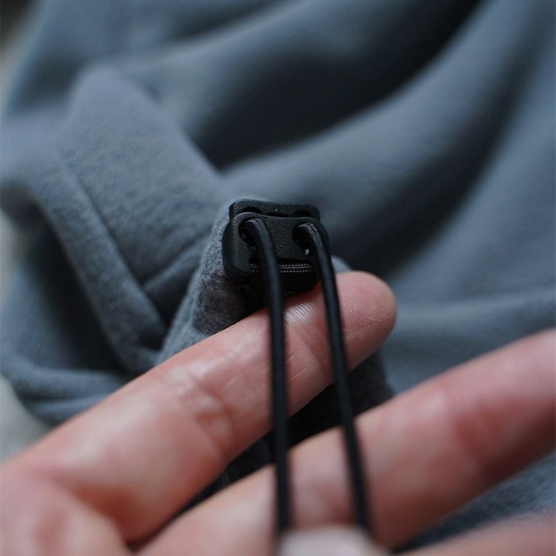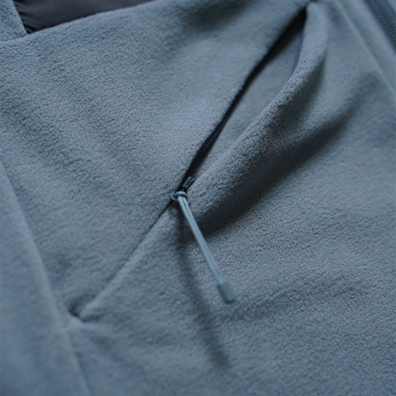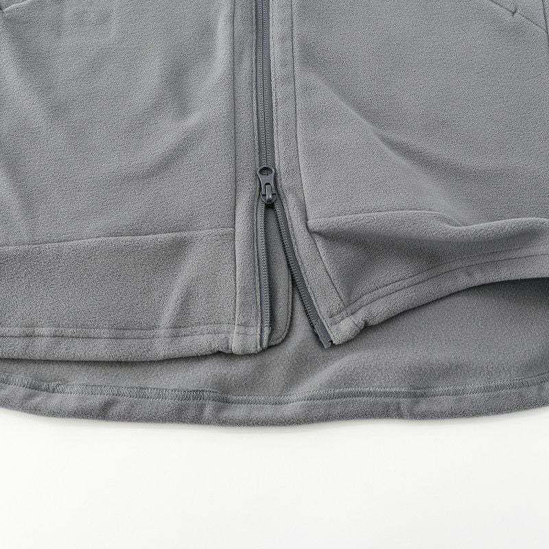 ダブルジッパーによる温度調整、サムホールやドローコードなどのディテールは、行動中からキャンプまで幅広いシーンに対応。