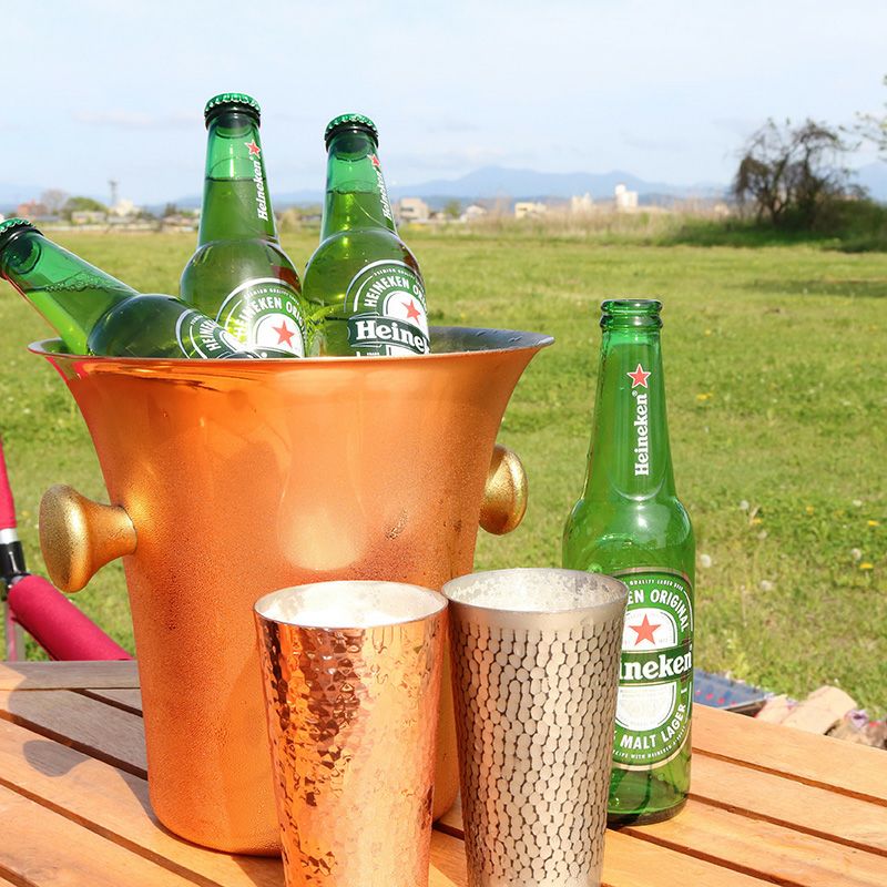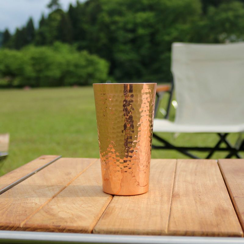 銅は金属の中でも優れた熱伝導率を誇ります。そのため冷やしたビールやジュースを注げば、あっという間にカップ全体が中の飲み物と同じ温度になり、いつでも飲み物そのままの味わいを楽しめます。