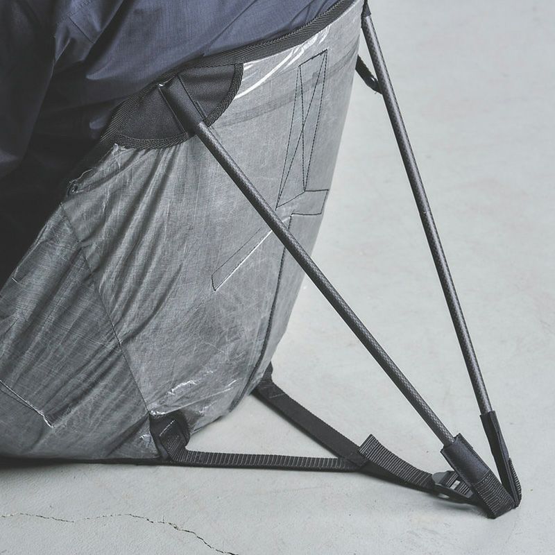 Dyneema® Composite FabricとEVAシリカエアロゲルフォーム及びカーボンファイバー3Kを使用した重さ200gの超軽量高断熱座椅子です。