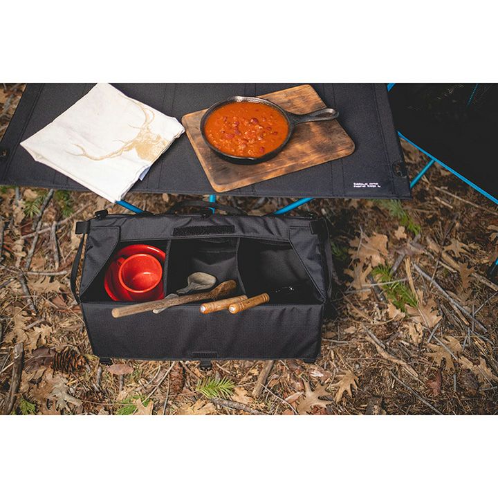 チェアやテーブルに対応した拡張性の高い収納バッグです。側面にナイロンテープがついており、カラビナやアクセサリーを取り付けることができます。使用するシーンや取り付けるギアに合わせてサイズをお選びいただけます。