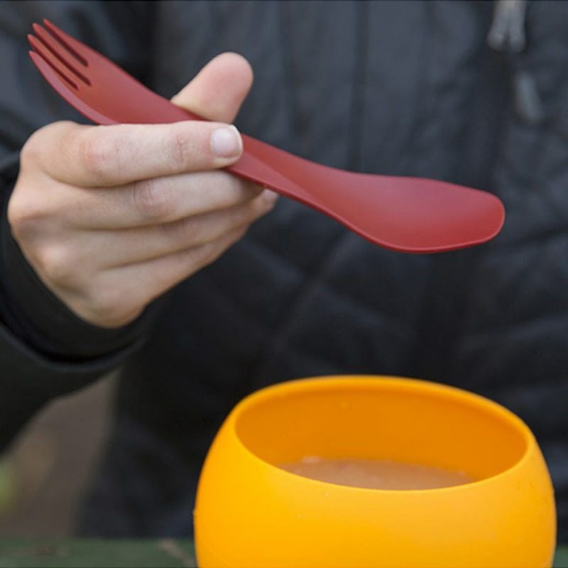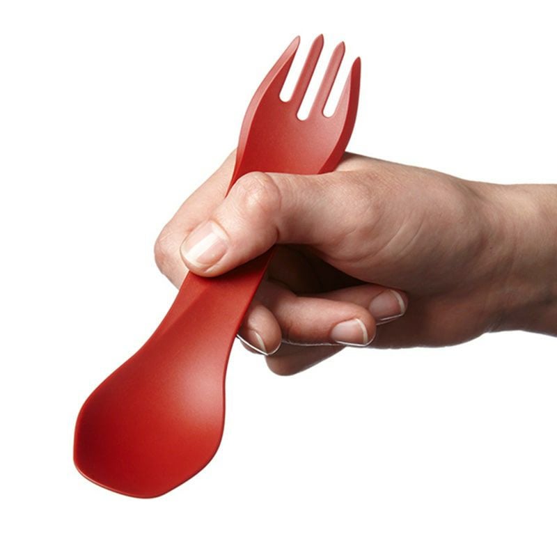 スプーンとフォークが両端に付き、一体型になったカトラリー。