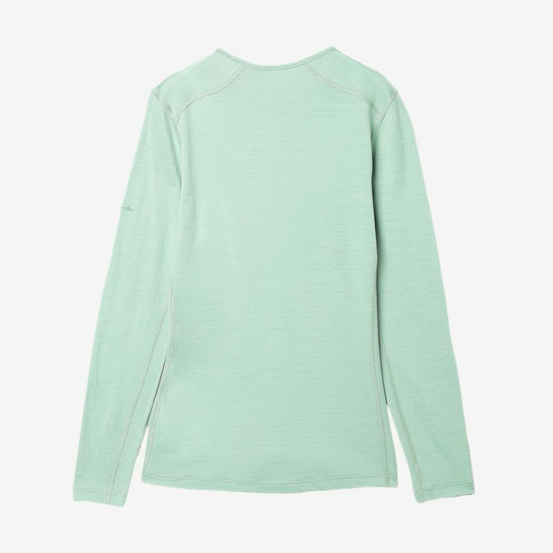 シンプルなクルーネックタイプで、同系色刺繍ロゴのみのすっきりしたデザインに仕上げています。素材はメリノウール100%で、肌に直接触れてもチクチクしにくい優しい肌触りが特徴。天然素材の心地よさと機能性を併せ持つ1着は、本格的なアウトドアシーンから日常の保温着まで幅広く活躍します。