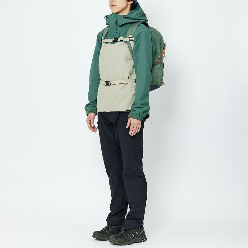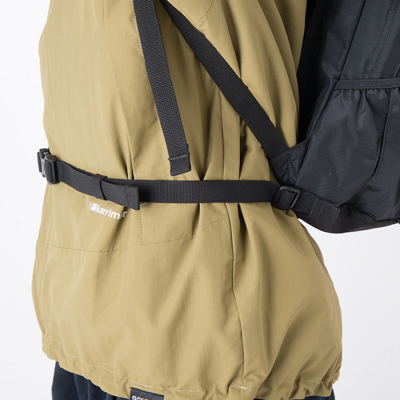 機能性を高めるだけでなく、アウトドアテイスト溢れるデザインのアクセントにもなる、カラビナなどをかけることのできるデイジーチェーンをフロント部分に装備。