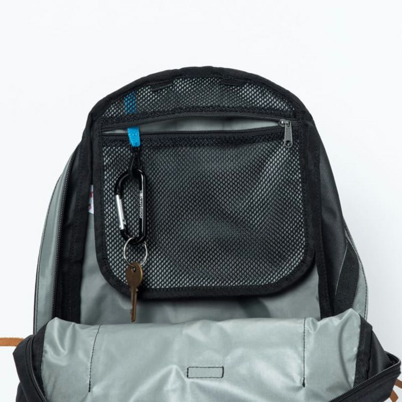 本体内部にはキ-フック付きメッシュポケットを配置し、貴重品や小物の整理に便利です。