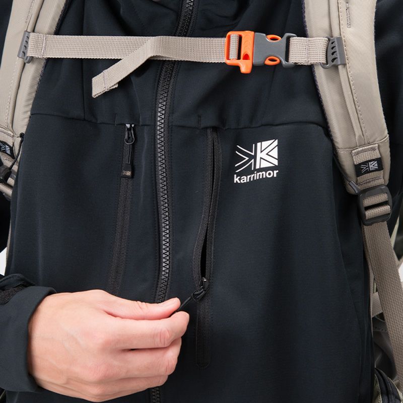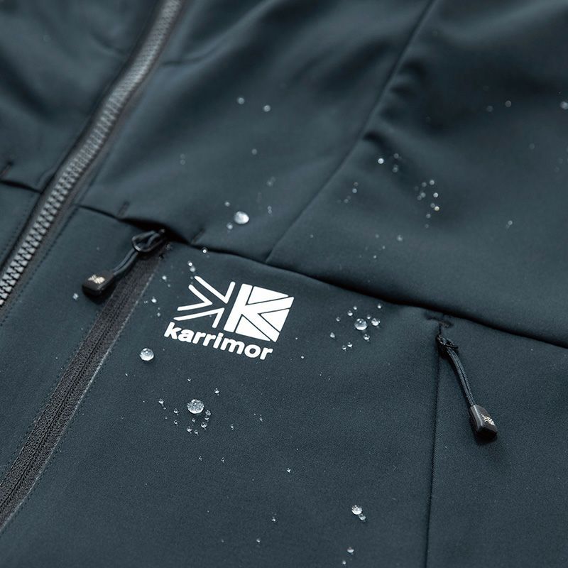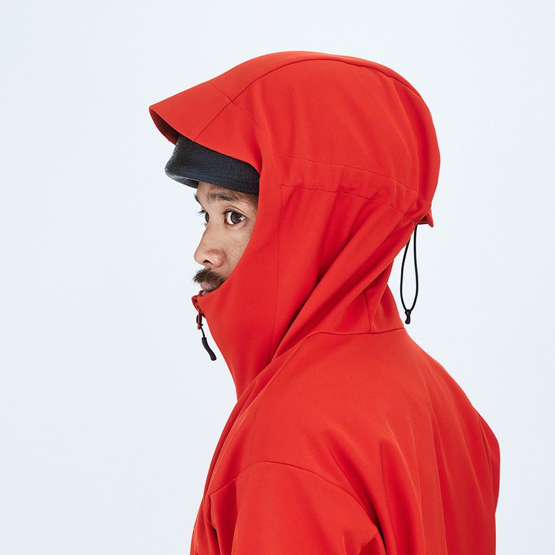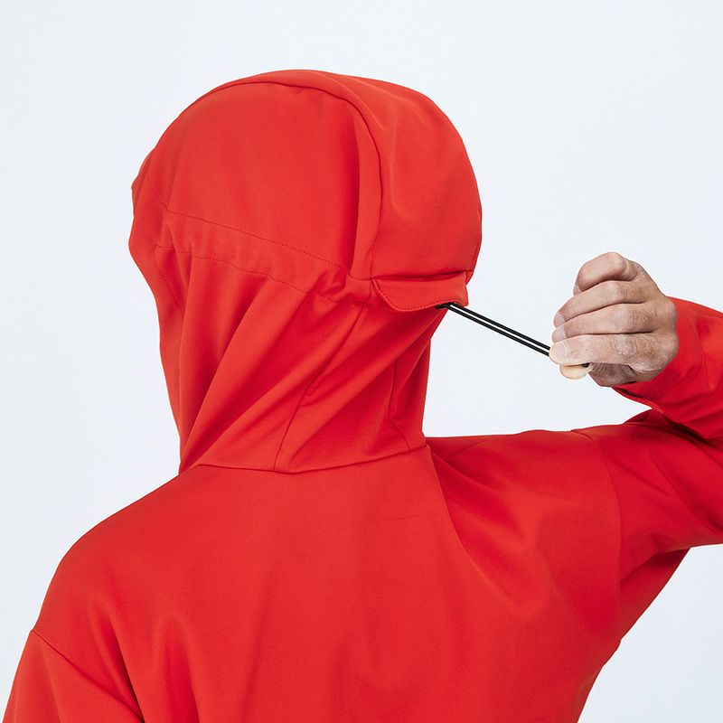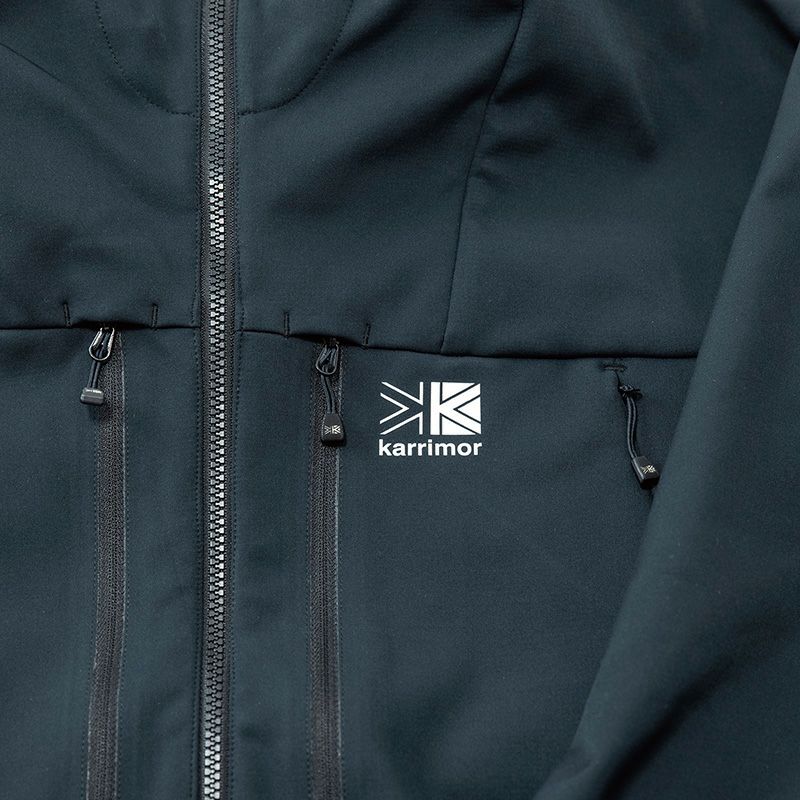 防風性・摩耗性及びストレッチ性に優れたソフトシェルフーディー。