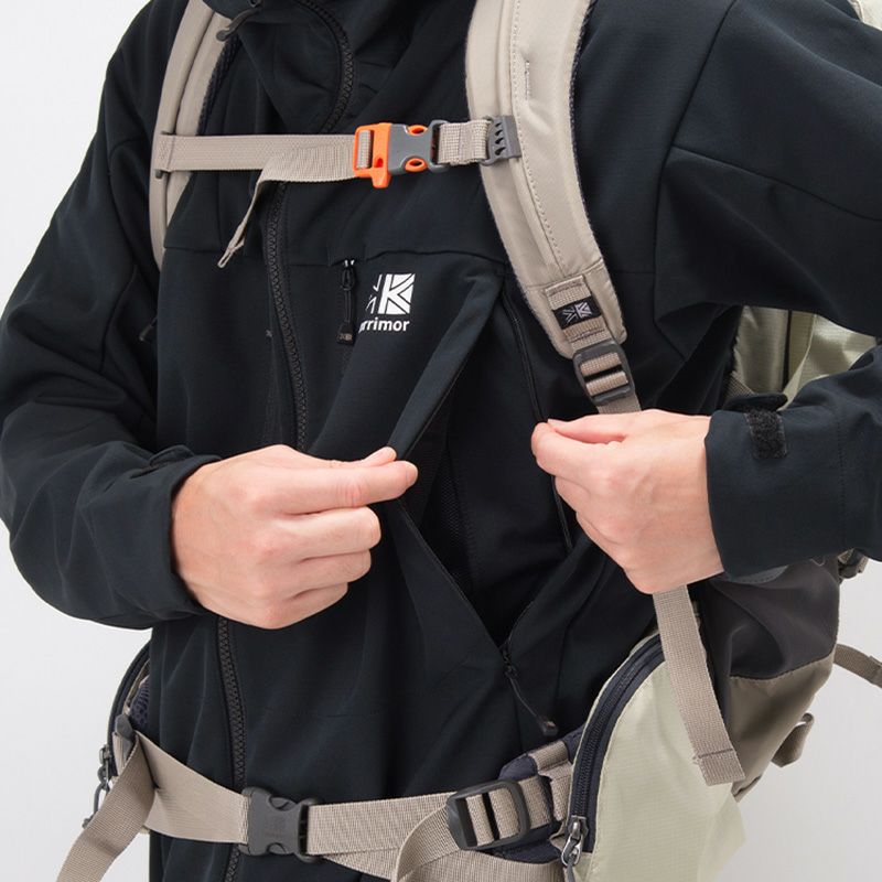 前身頃にチェストポケットとベンチレーションポケットを配置することにより、衣服内環境を更に快適に保つ。前モデルから伸縮性を向上させ、より高い可動域を確保。