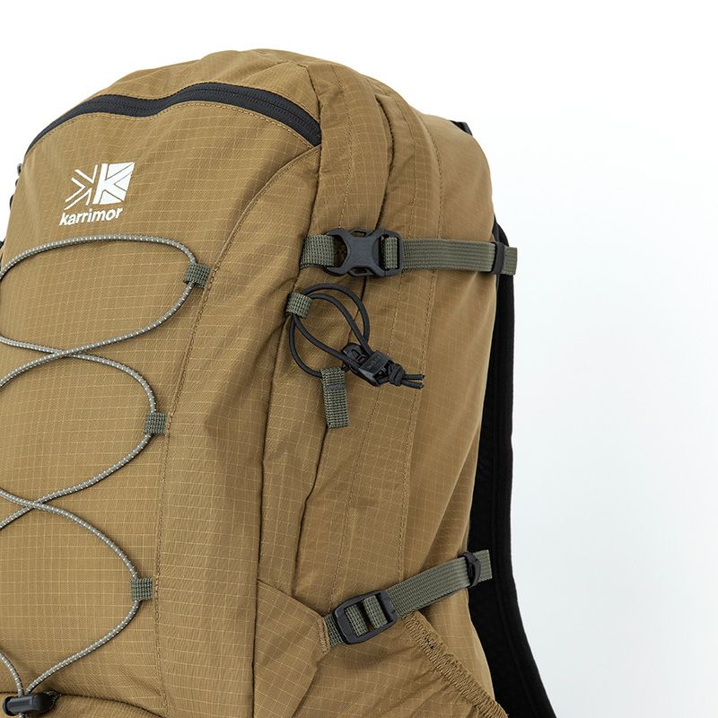 フロントにはバンジーコード、加えて両サイドにフラップを搭載することで、荷物を包み込むように固定することが可能となり薄手のジャケットなどを一時的に収納するなど、便利な機能が満載。