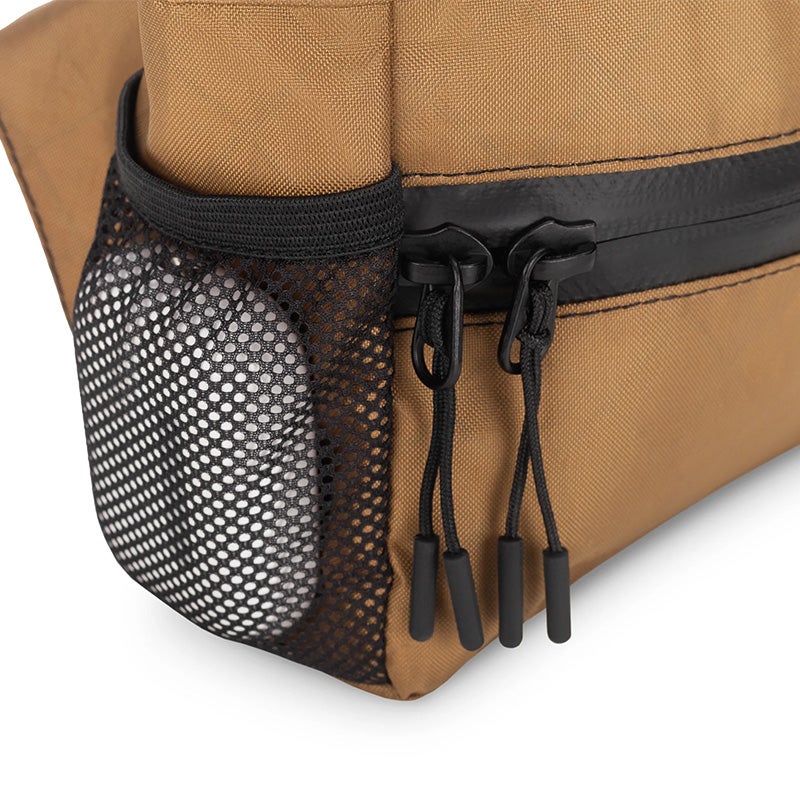 容量2〜5Lに可変可能なロールトップ式ウエストバッグ。