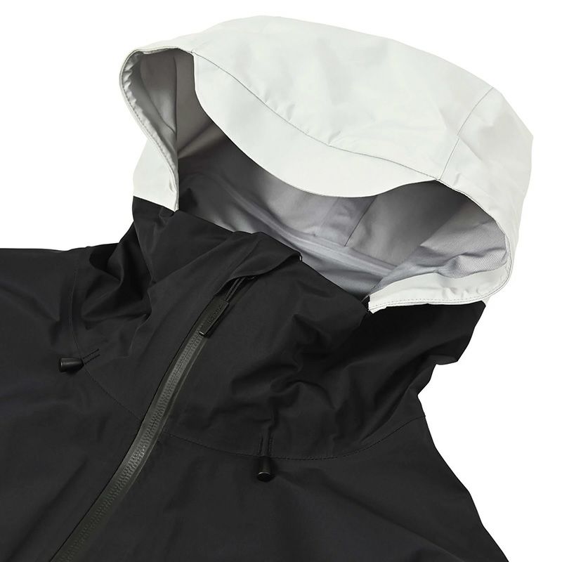 50デニールのナイロン66糸を使った軽量で平滑な平織り組織の生地にGORE-TEXメンブレンとナイロンバッカーを貼り合わせた3層素材で、持続的な透湿性、耐久防水性と高い防風性を備えたGORE-TEX Performanceテクノロジーを使用したシェルジャケット。バスト部分にはデザイン性と実用性を兼ね備えた止水ファスナー付ポケットを配置しています。