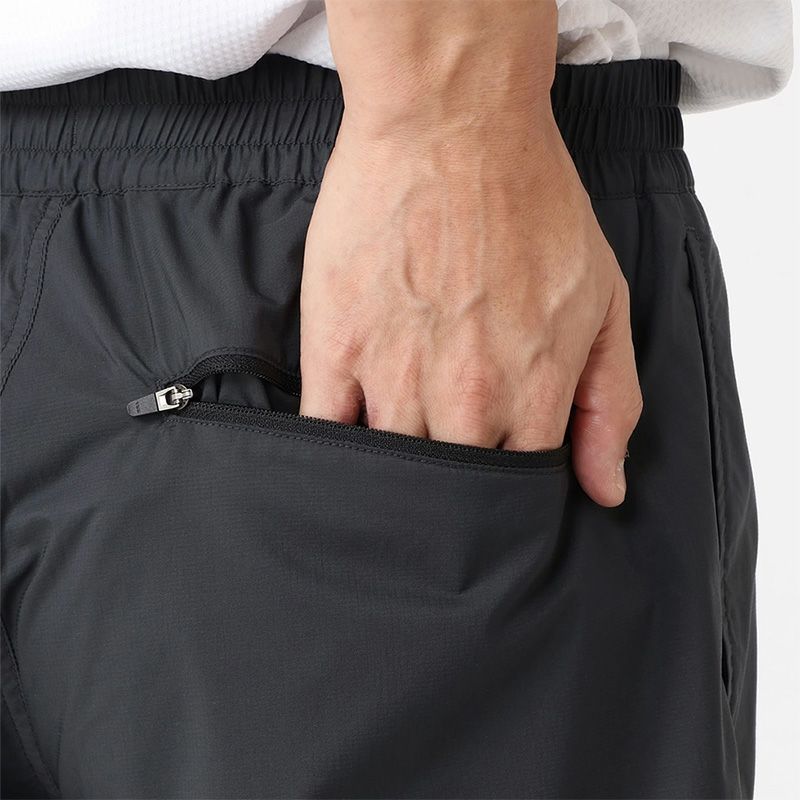 シンプルなつくりで、Mサイズでわずか110gの軽量さを誇り、ストレッチ性があります。このショーツはあらゆるシーンで軽やかに履きこなせ、ベンチレーションホールとメッシュ裏地のハンドポケットが備わり、素材特性を生かした通気性が高いデザインです。