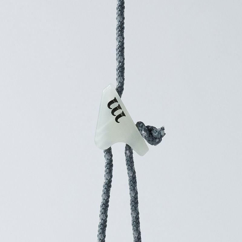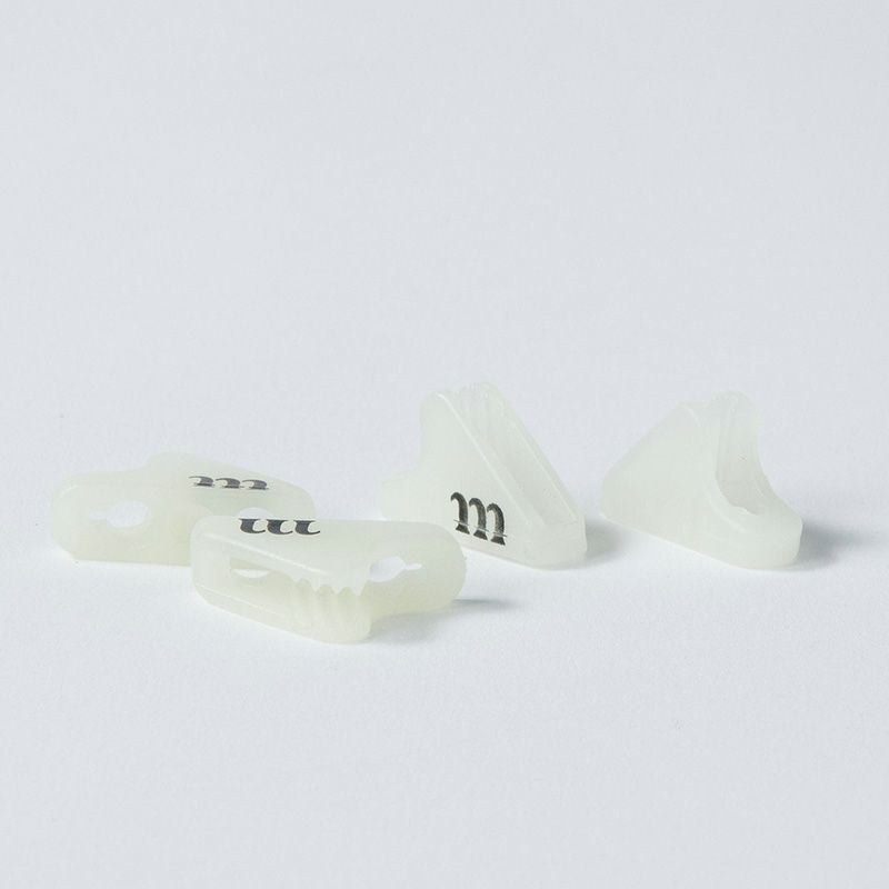 蓄光樹脂製の軽量なテンショナーにムラコのロゴである"m"をデザインしました。