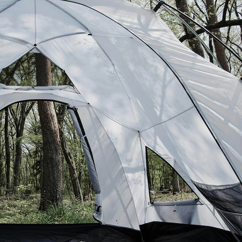 グスタフは高所登山のベースキャンプでの使用を想定したテントです。ポールを6本組み合わせたジオデシック構造を採用し、圧倒的な耐風性と居住性の両立を実現しました。