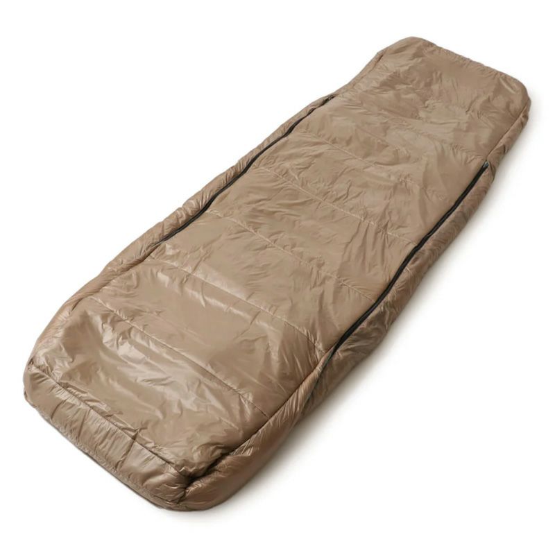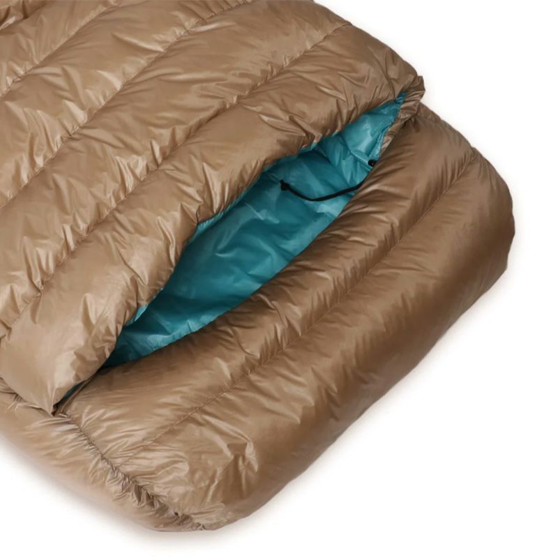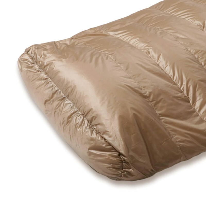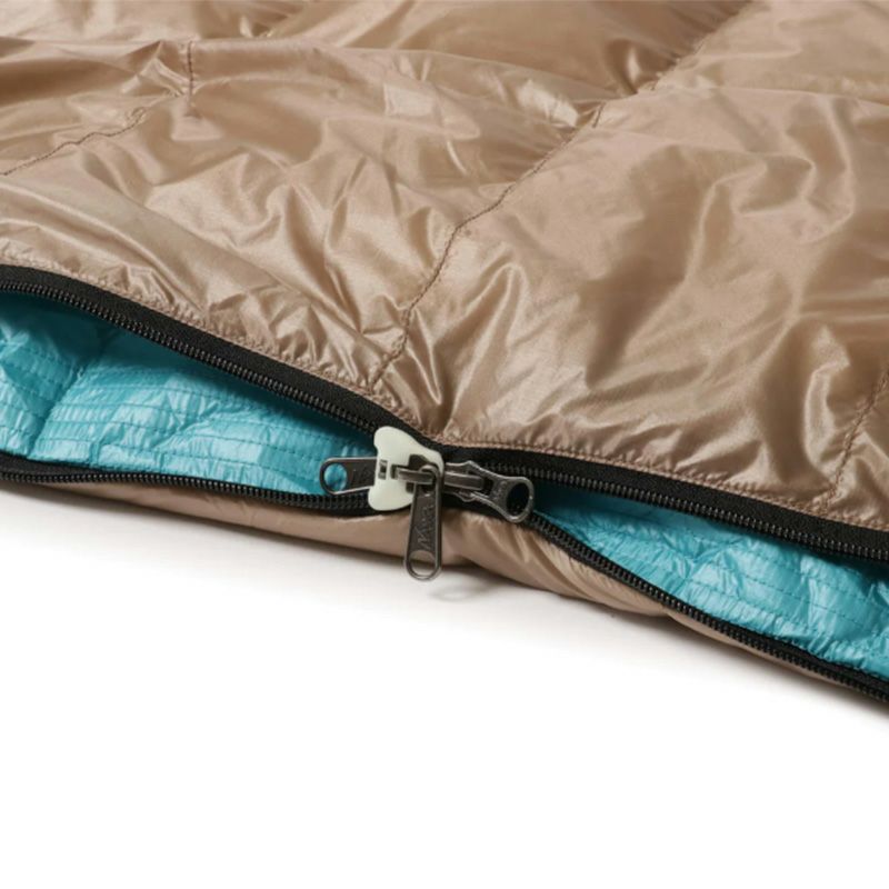 上面には保温性が高く軽い ダウン、体重によって潰れてしまう下面には化繊綿(シングルキルト構造)と合理的な構造となって います。キャンプや野外フェスだけでなく、家や車中泊にも活躍するシリーズです。