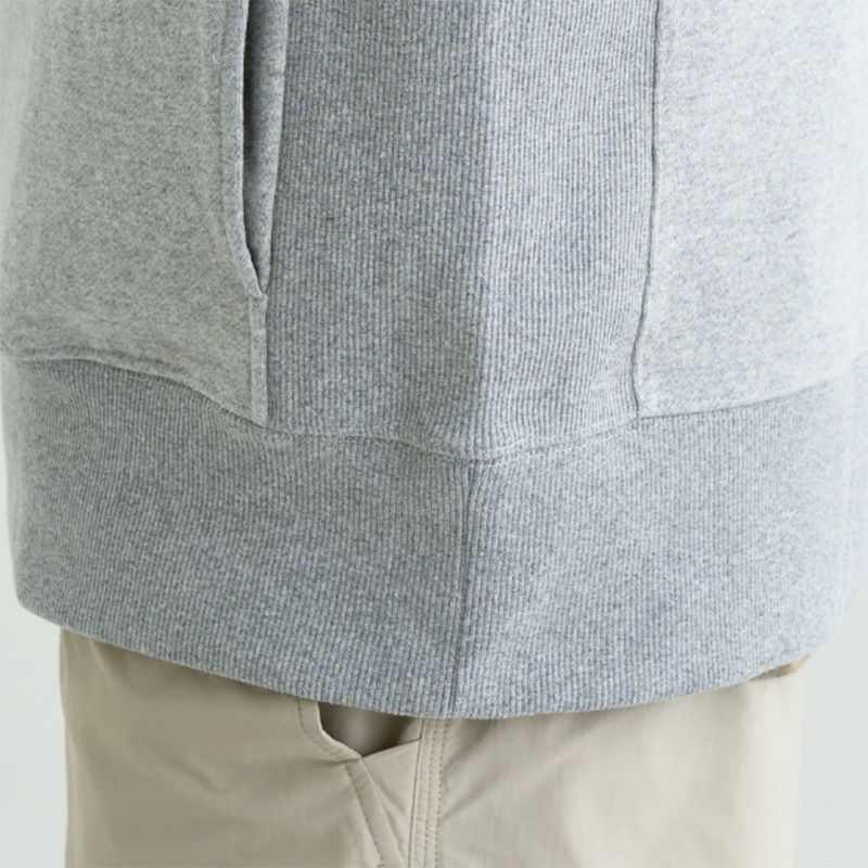 生地には、リサイクルコットンの"Ferre Yarn(フェレヤーン)"を使い、滑らかな肌触りになっています。柔らかい着心地で、動きやすさを求める方におすすめ。内側は、「裏毛」になっており裏起毛に比べて、通年着できる仕様になっています。さらに、ポリエステルを混紡する事で生地に強度としなやかさをプラスしています。