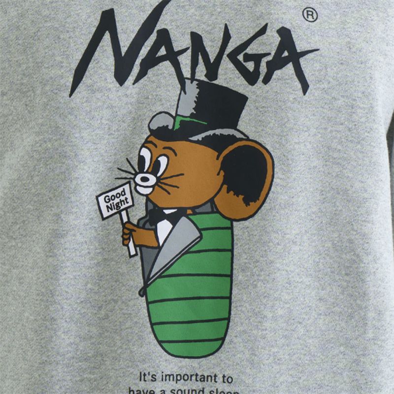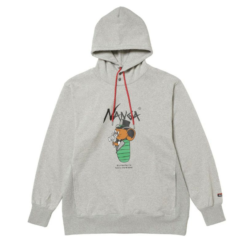 ジェリー鵜飼氏を代表するジェリーマルケスくんが、ナンガのシンボルの1つであるスリーピングバッグ(寝袋)に入ったグラフィックデザインプリントフーディー。キャッチーなグラフィックで、ストリートライクな着こなしにもぴったり。