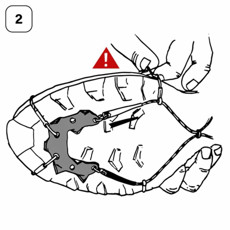 - 伸縮性ベルクロバンドが付属し、シューズの甲に設置することでクランポンのズレを防ぎます。