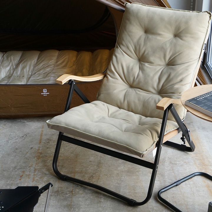 地面に近い位置で脚を伸ばして座れるローチェア。