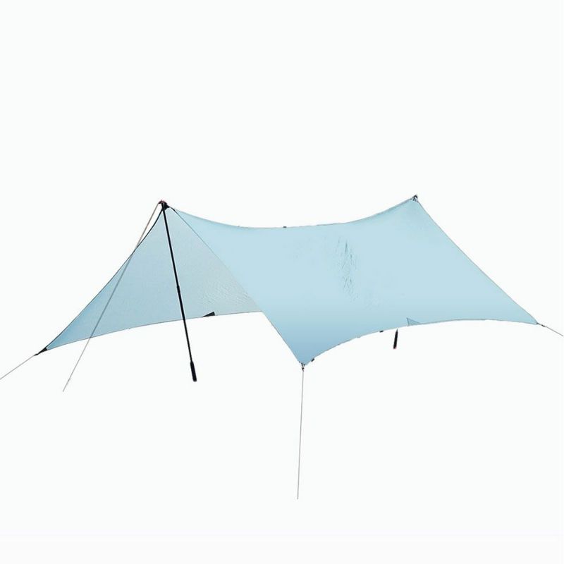 コーストウイングはグレイッシュブルーのカラーリングが美しいカテナリーカットの長方形タープ。