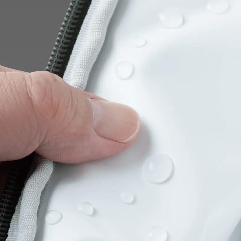引手付ダブルスライダー仕様の開閉しやすい止水ファスナーを採用。