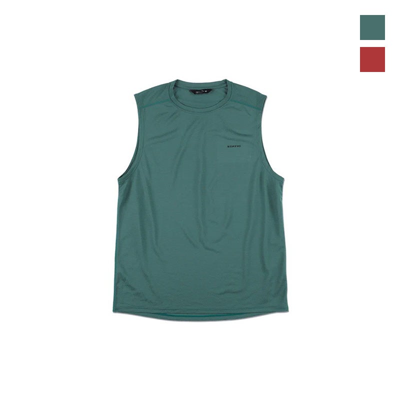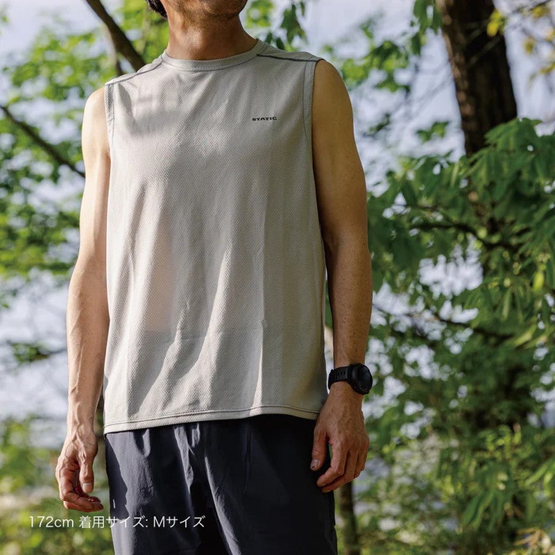 通気性を重視した、超軽量の化繊メッシュスリーブレスシャツ。